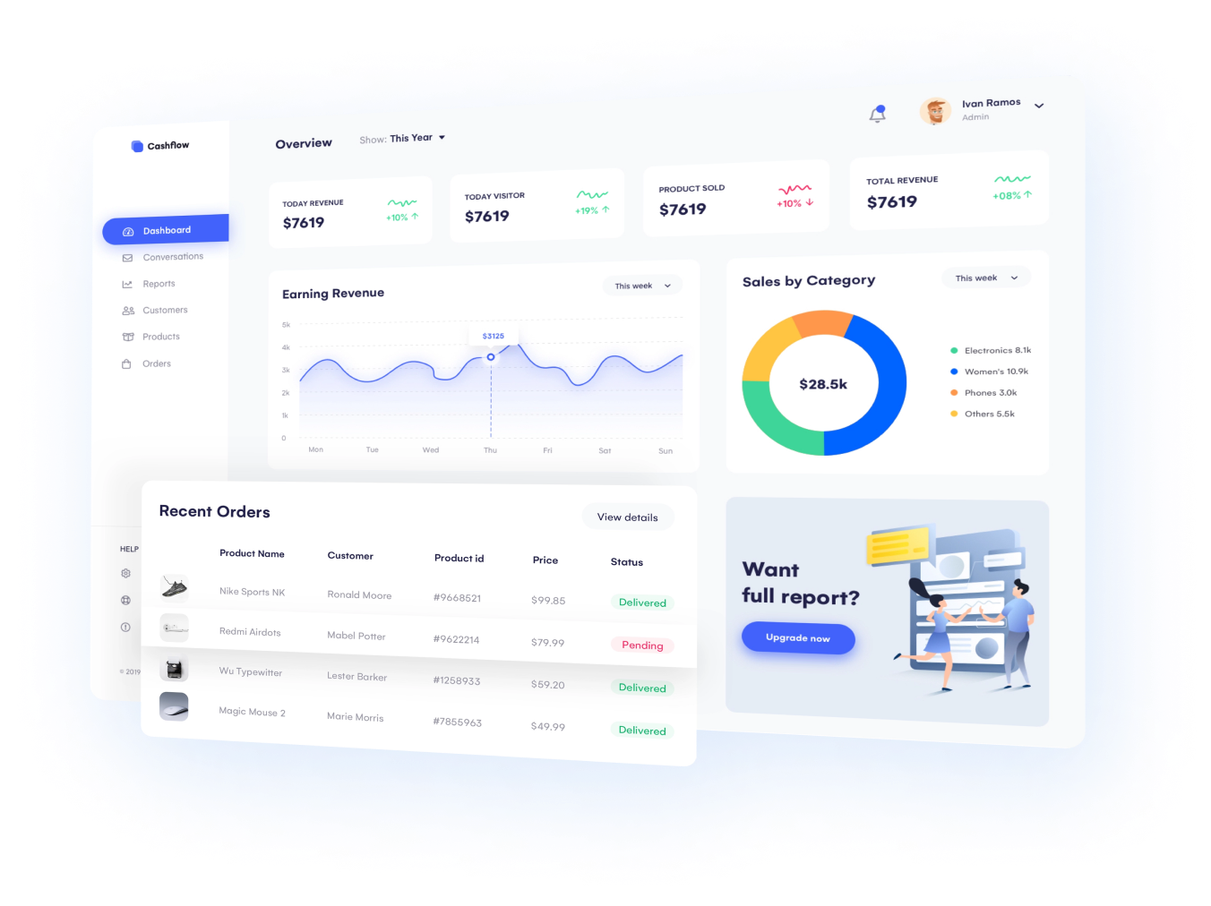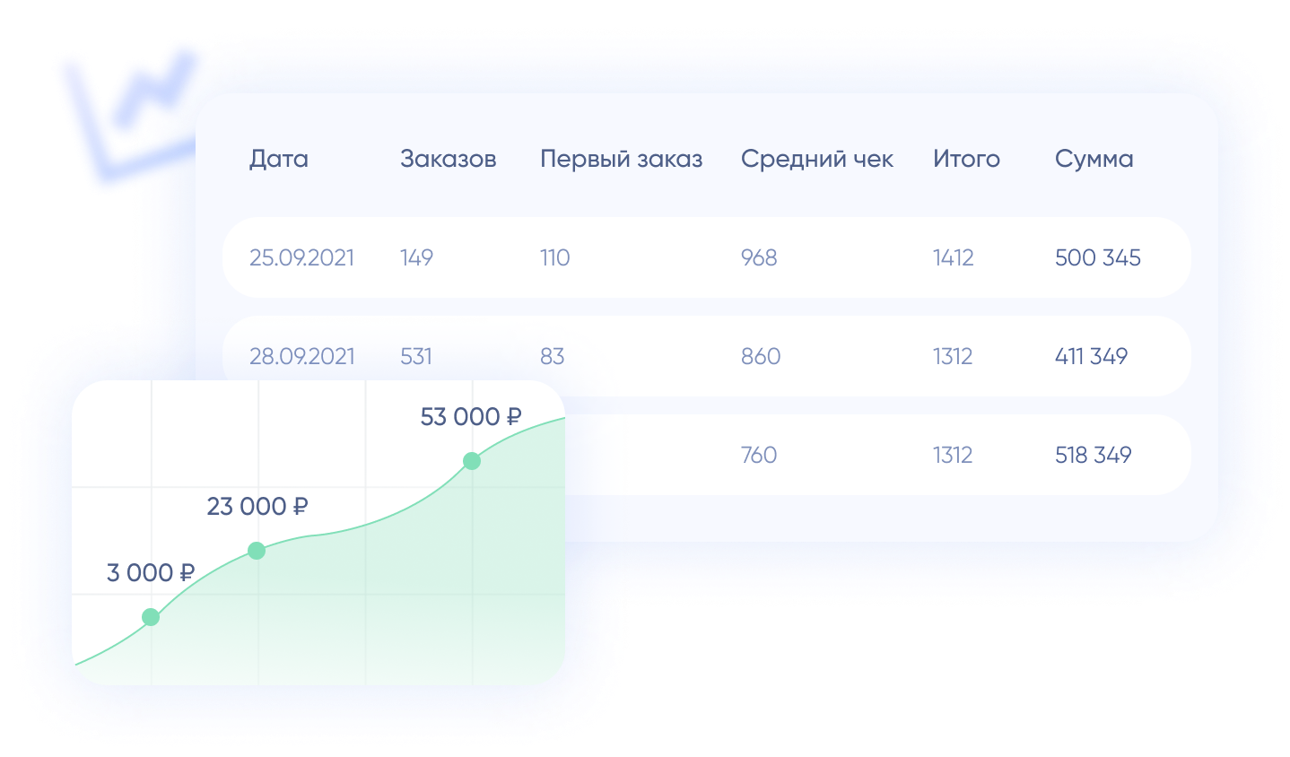 Полный контроль над цифрами вашего бизнеса. Вы сможете следить и контролировать важные показатели с любого устройства, такие как.