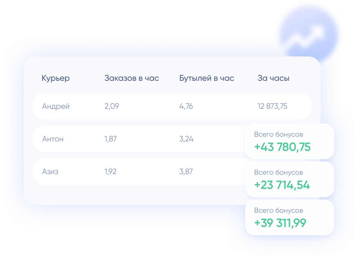 - есть настраиваемая система мотивации от количества закрытых заказов;