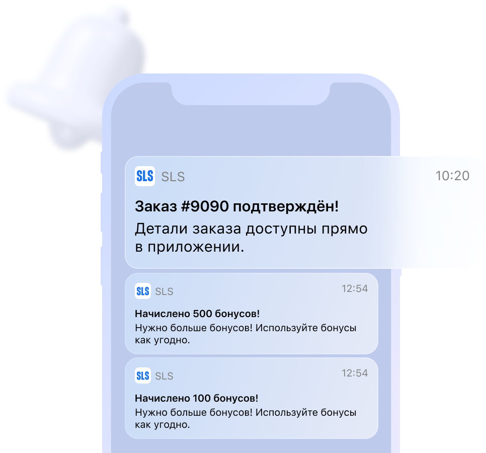 Пуш уведомления позволяют держать клиента в курсе обработки заказа, присылать чеки, сообщать о бонусах а также совершать повторные заказы. Автоматический рассылки уведомлений помогают сэкономить на маркетинге и продлить срок жизни клиента.