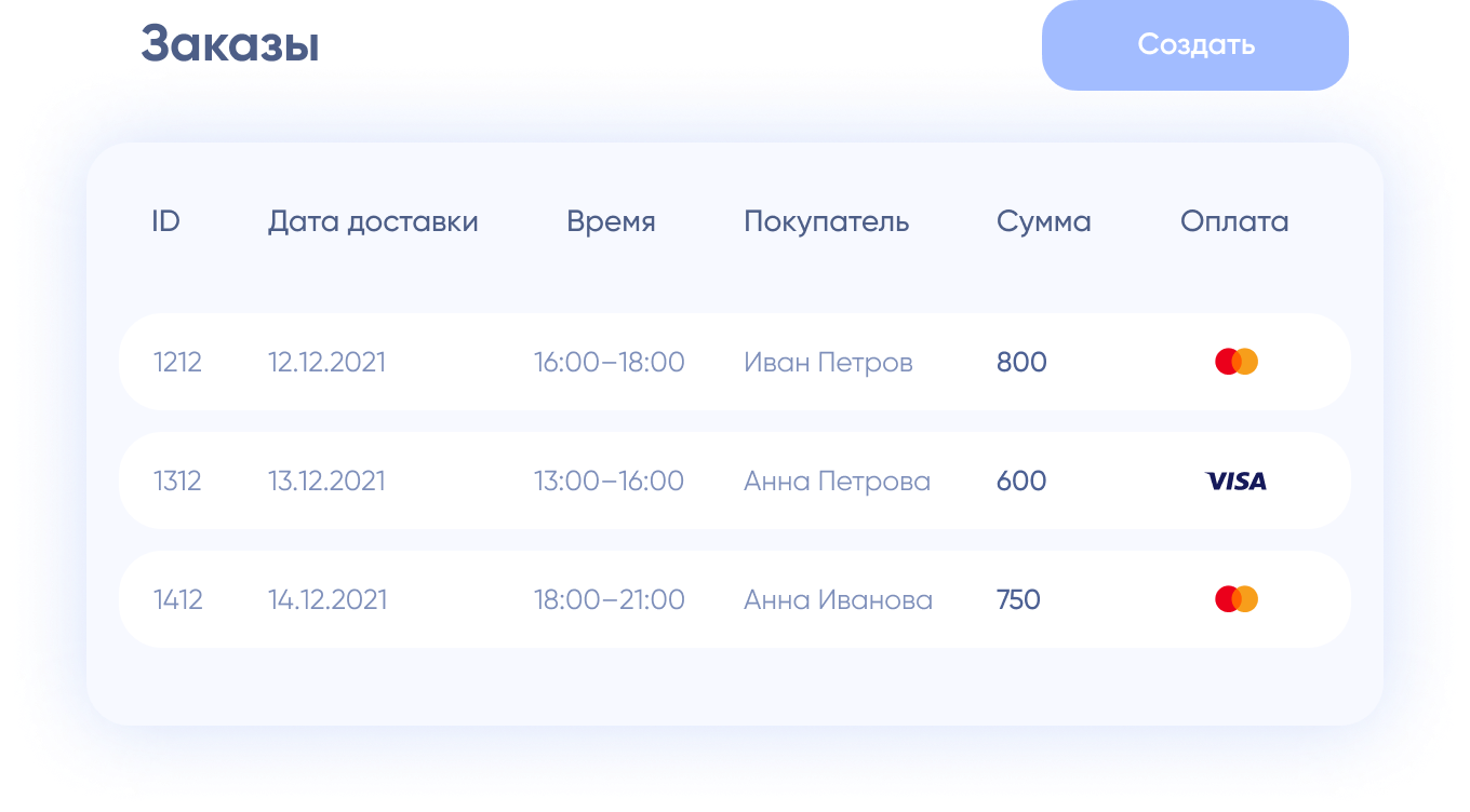 - Вся бизнес аналитика от выручки до эффективности отдельных курьеров.
